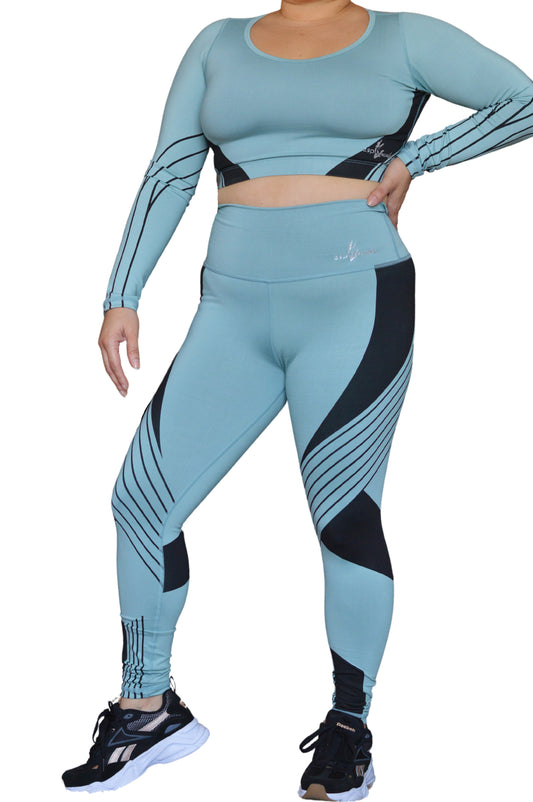 2 Pieces Sport Studio Color Block High Elasticity Set - Ref. Urban Sage